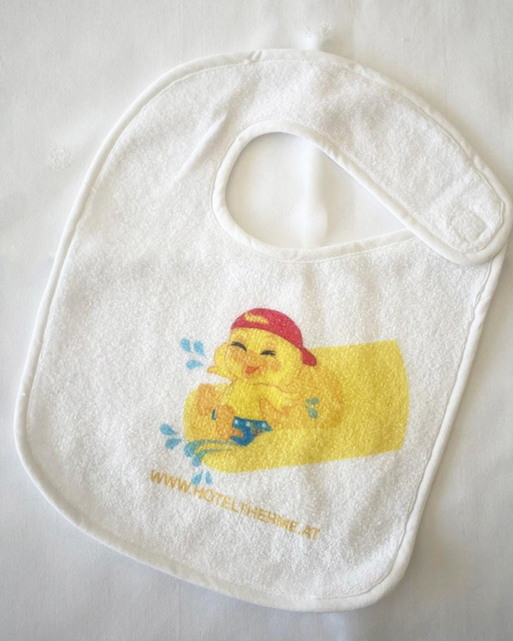 Mit dem Lätzchen, wo auch noch unser Maskottchen HopiHo zu sehen ist, isst man gleich viel lieber.
